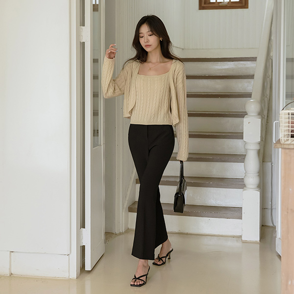 Merry 缆绳 编织的 背心 开衫 (套装)