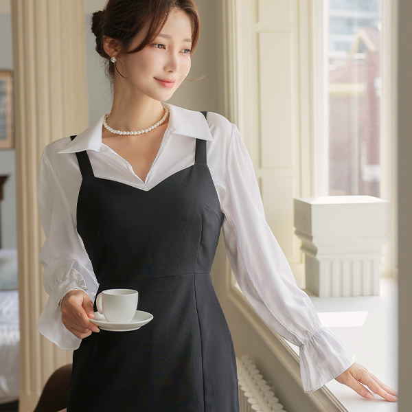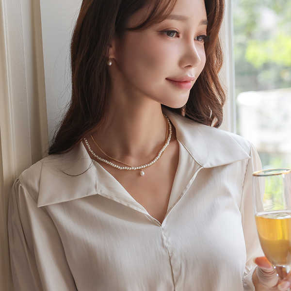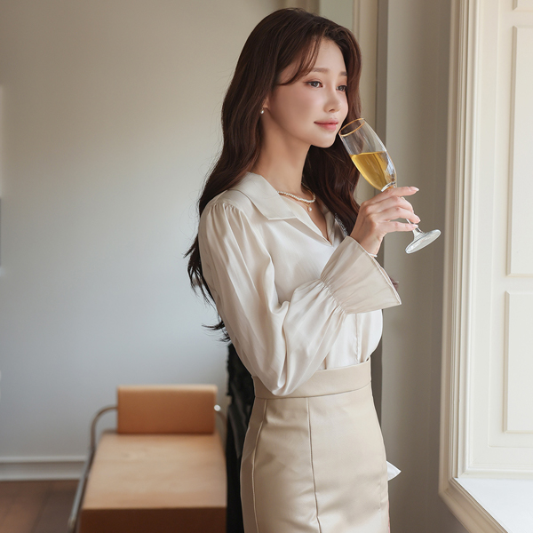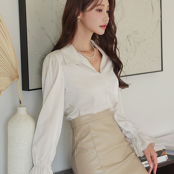 绸缎 敞开式 领子 宽松袖 罩衫