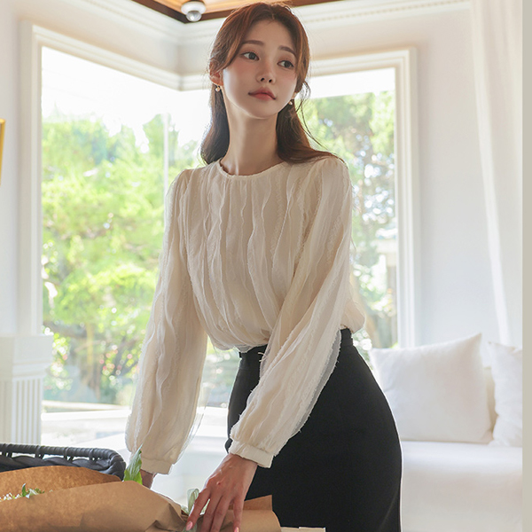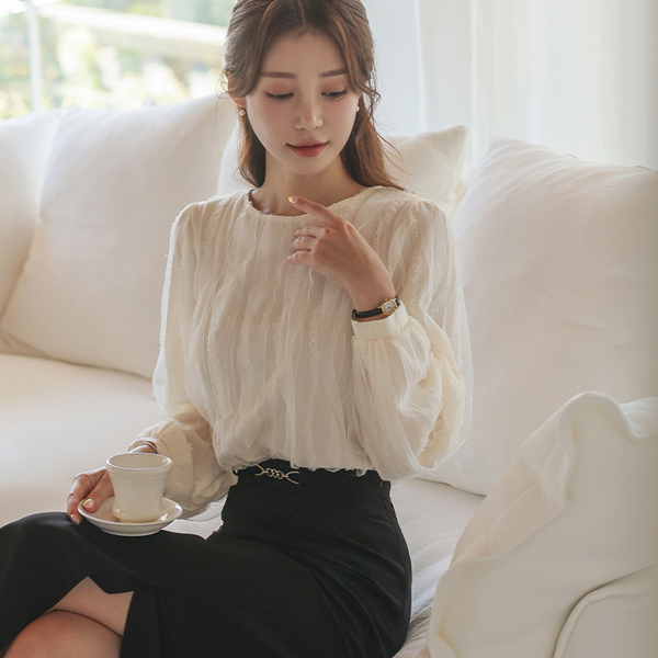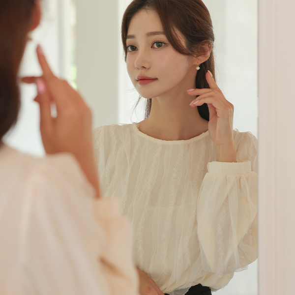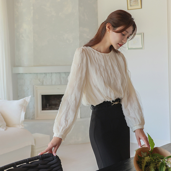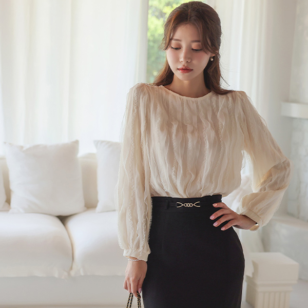 浪漫 波浪卷 蕾丝 荷叶 圆领 罩衫