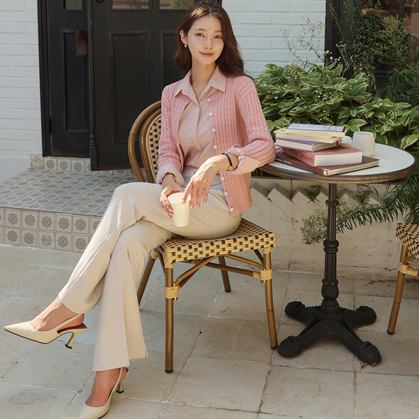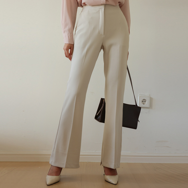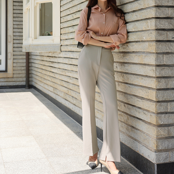 细密 弹力 底端 开衩 喇叭 宽松长裤