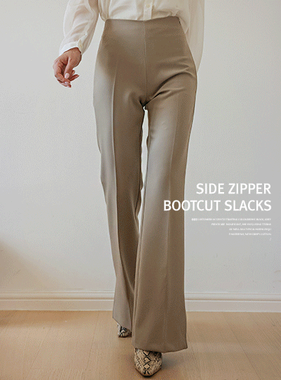 斯利姆 线条 侧拉链 侧纽 开衩 喇叭 宽松长裤