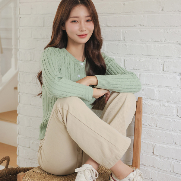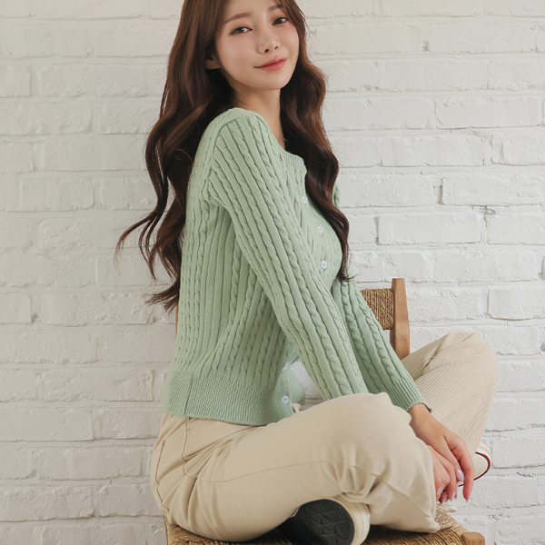 패리스 圆领 缆绳 针织衫 开衫
