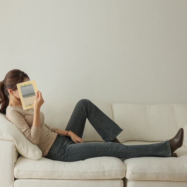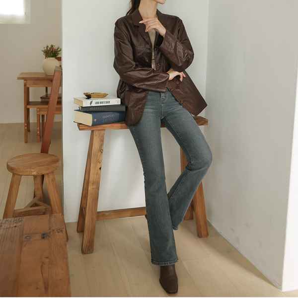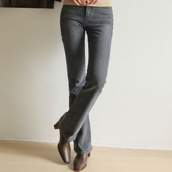 深颜色 高腰 斯利姆 喇叭 牛仔色 裤子
