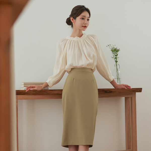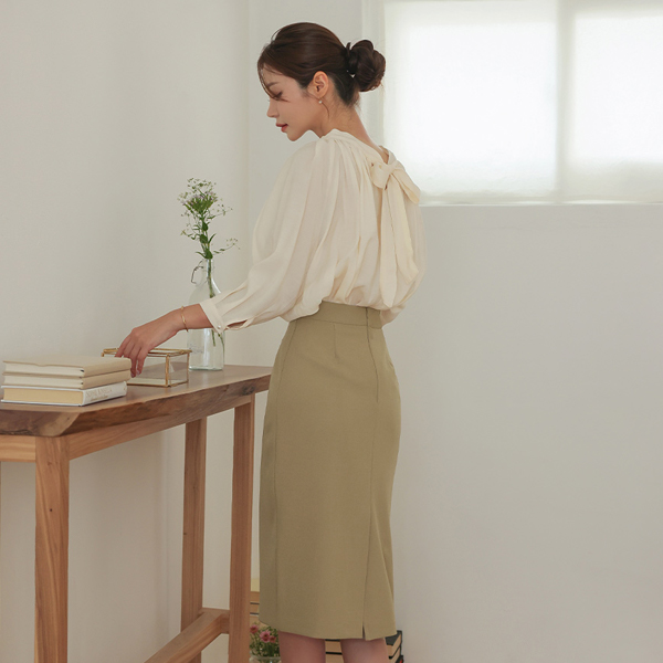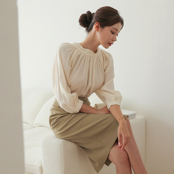 曲线 褶皱领 后面蝴蝶结 插肩 罩衫