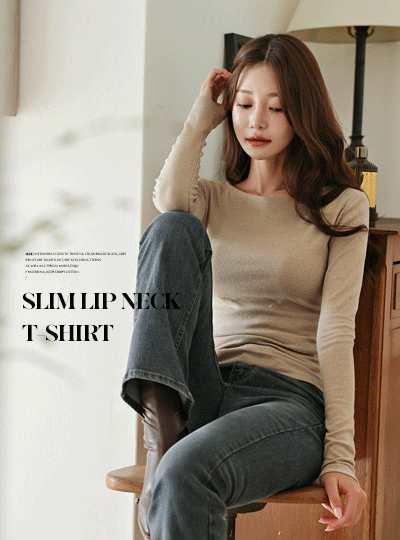 斯利姆 嘴唇领 棉 安哥拉 T恤衫