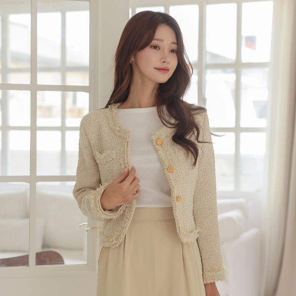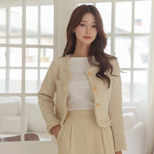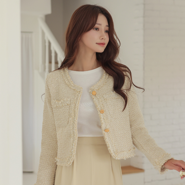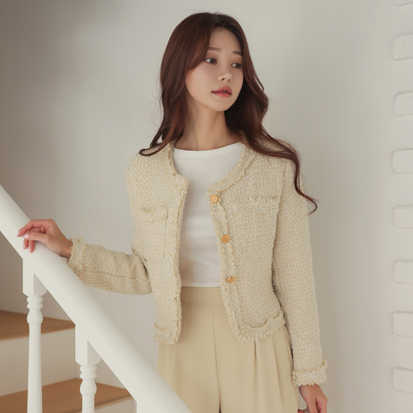 柔色 颜色 黄金 扣子 粗呢 夹克