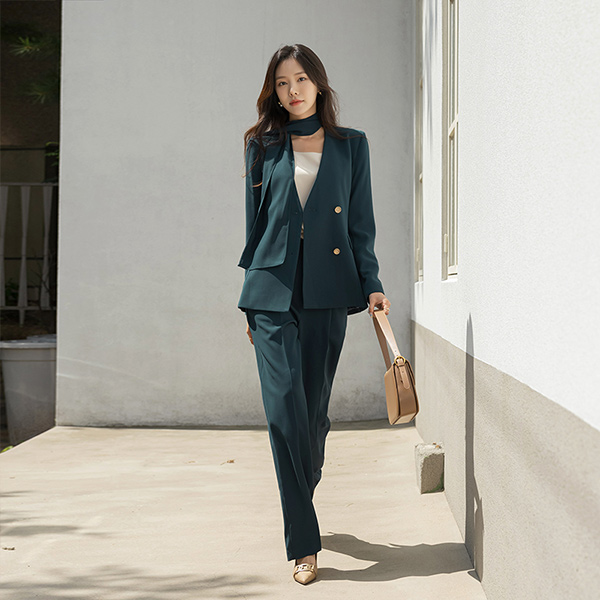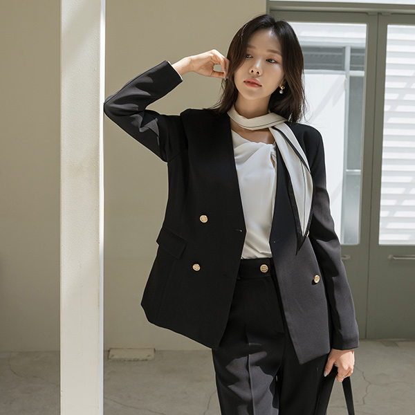 奢华裙 黄金 扣子 无领 Set-up 夹克 (围巾SET)