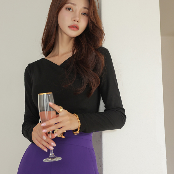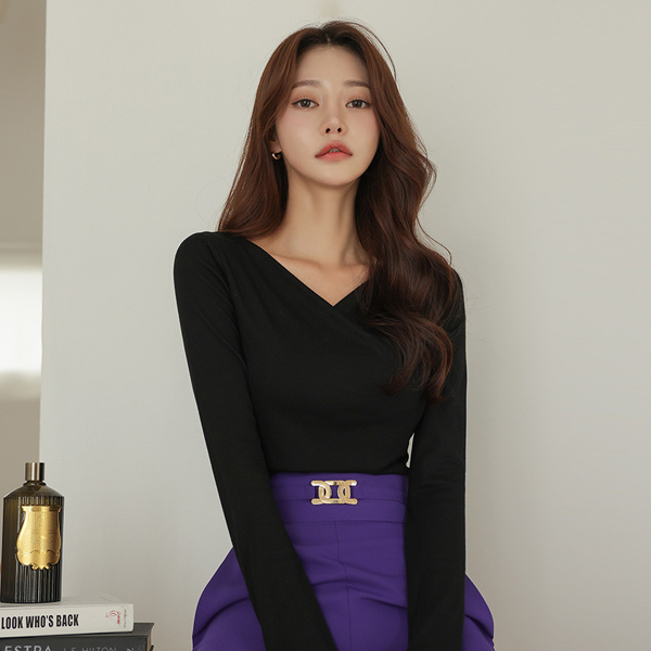 V领 裹身 斯利姆 弹力 T恤衫