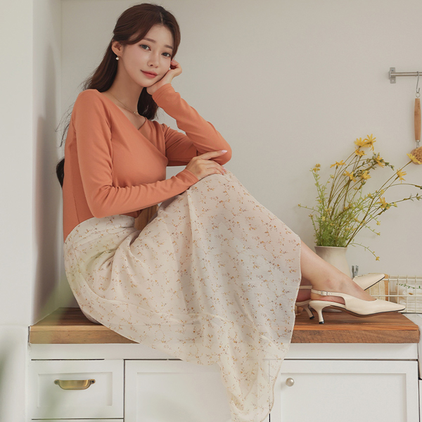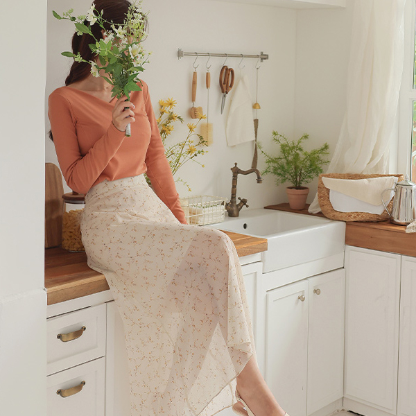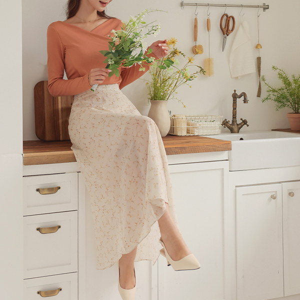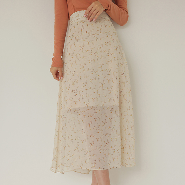 碎花 去皱纹 后腰松紧带 A字型 长款 裙子