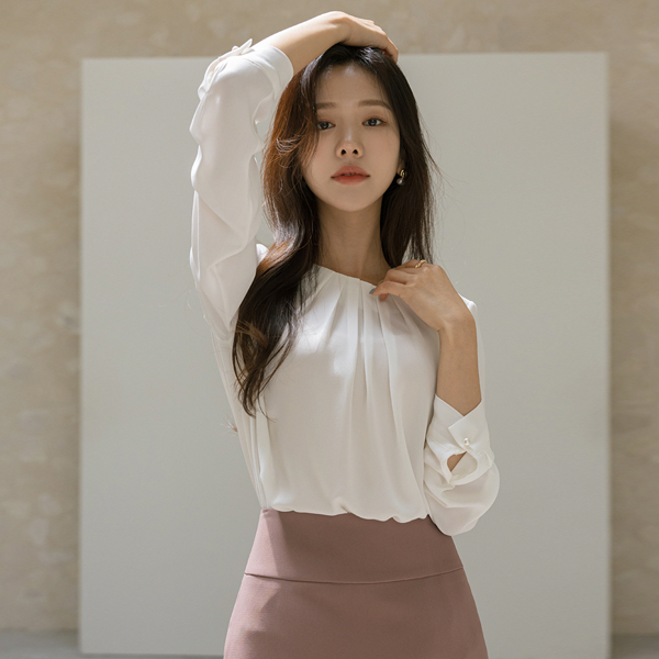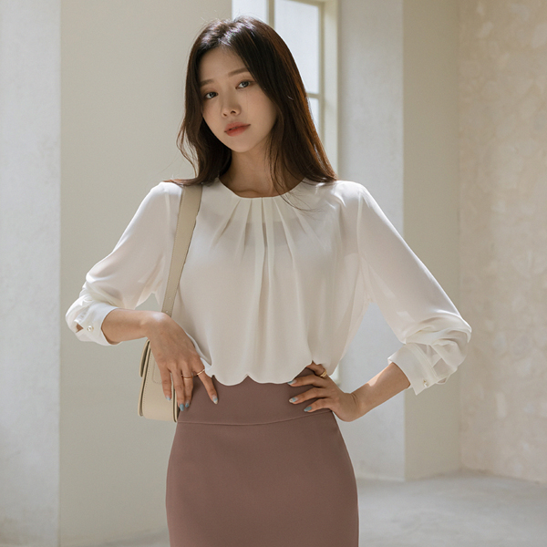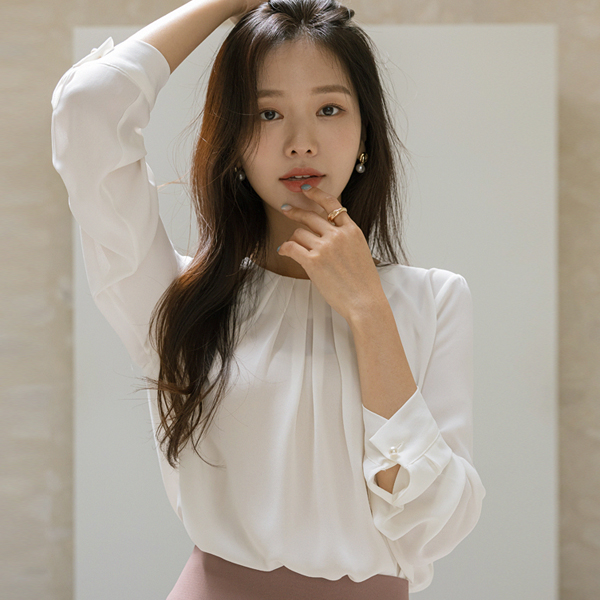 领线 褶皱 点缀 女性化的 罩衫