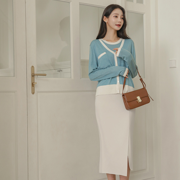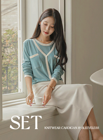 配色 衬里 针织衫 开衫&背心 SET