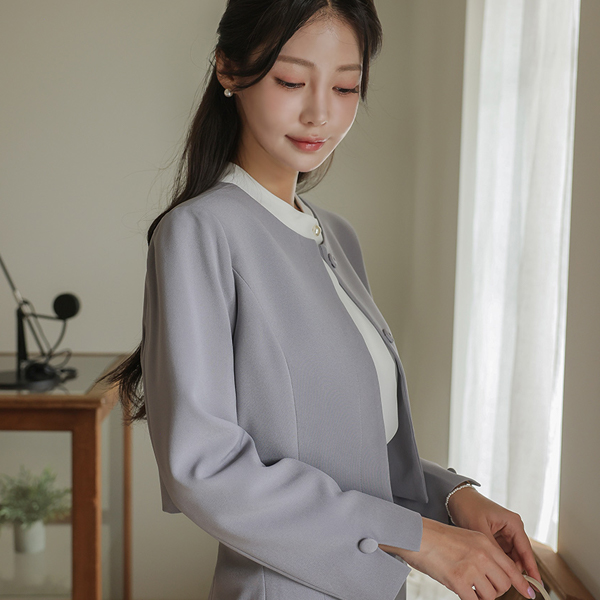 ODE 圆领 隐藏 扣子 弹力 7分裤 夹克
