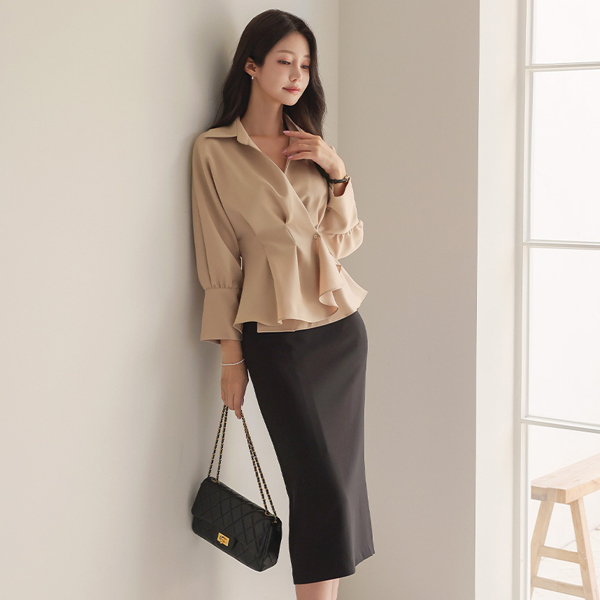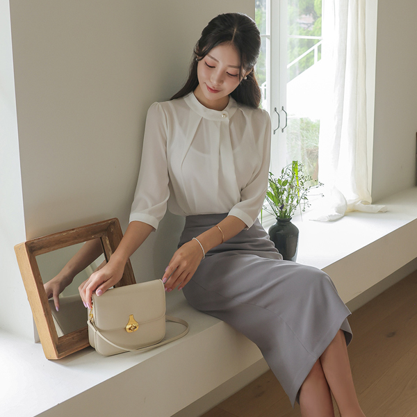 女性化的 侧纽 珍珠扣 罩衫(7分袖) Ⅱ