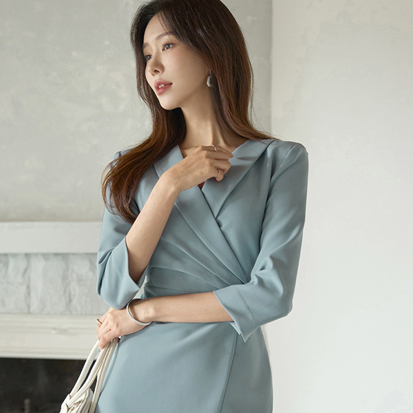 古典 褶皱 点缀 开衩 连衣裙