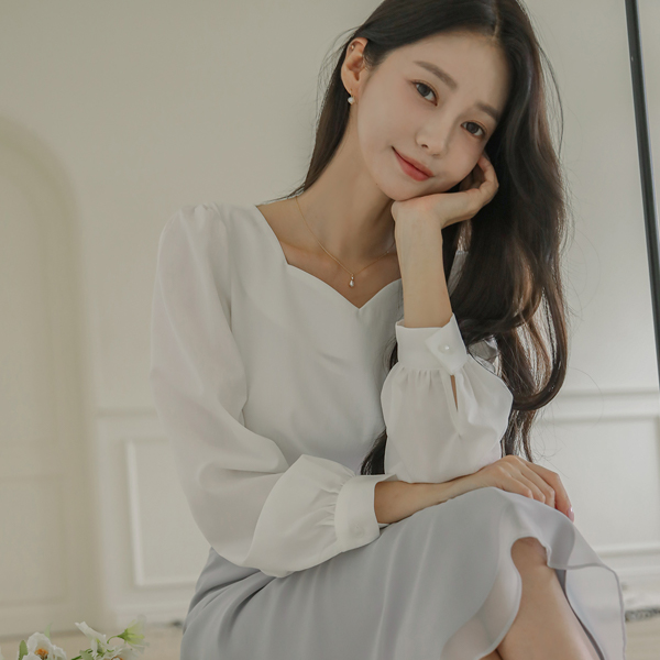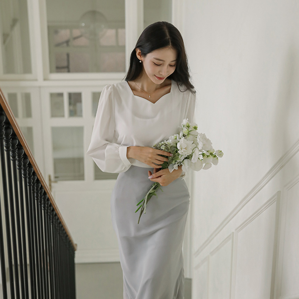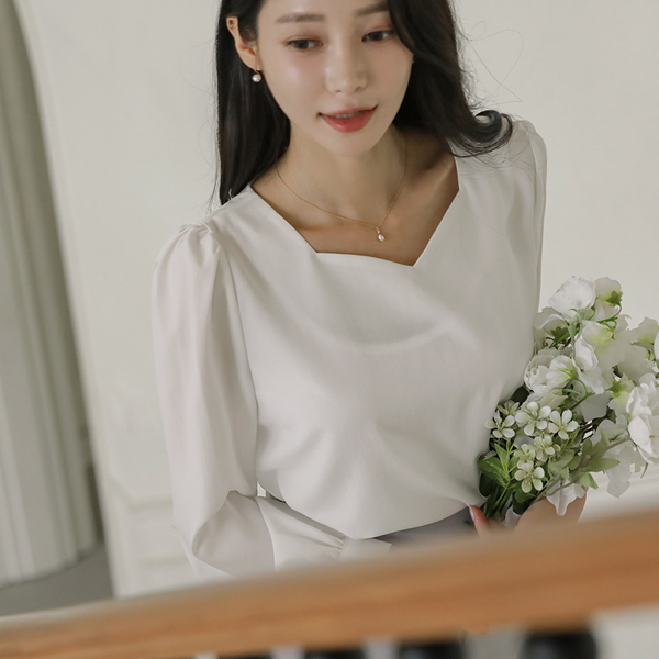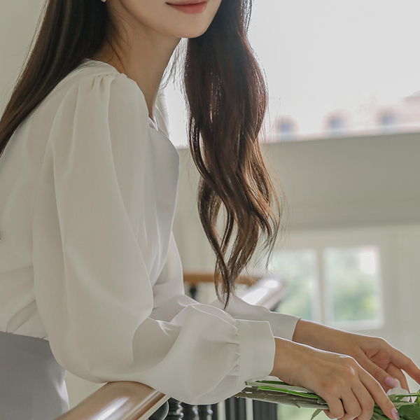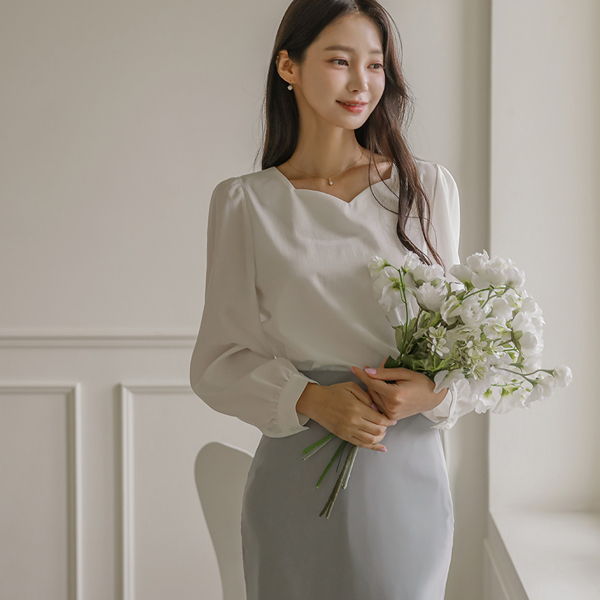 浪漫 心形领 泡泡袖 袖 罩衫