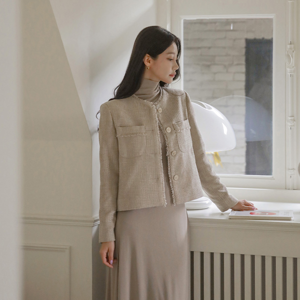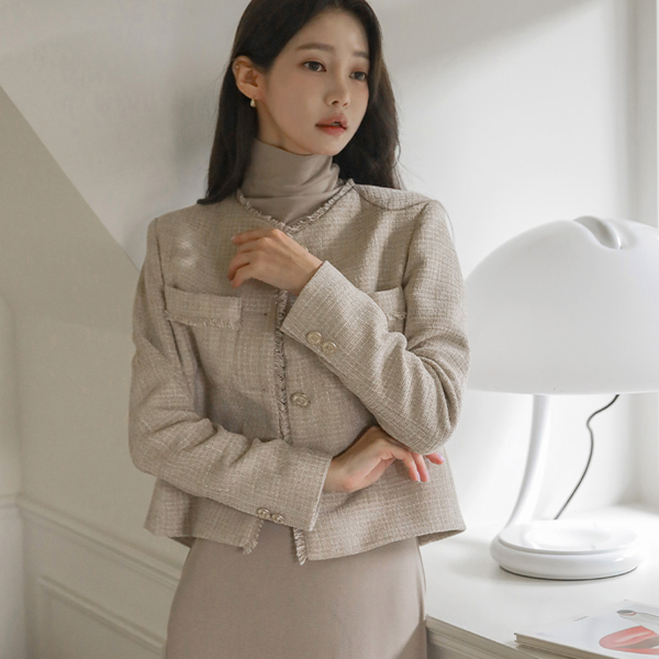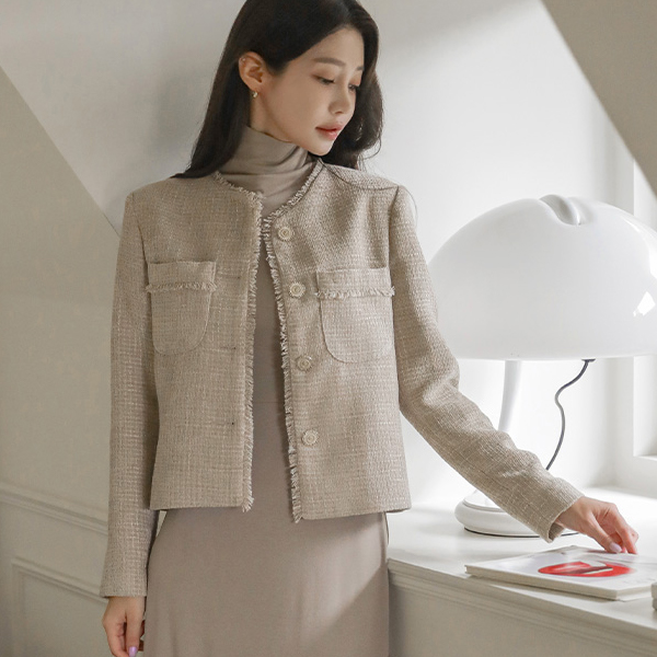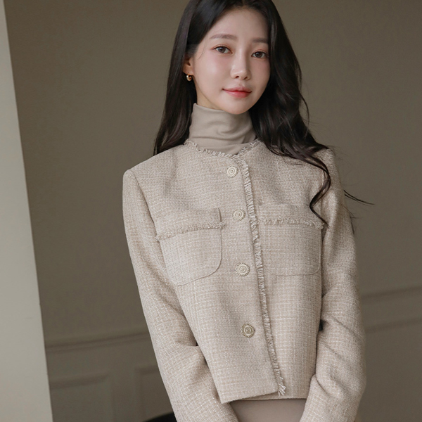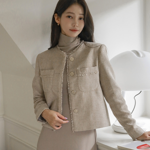 蓬松。 粗呢 穗饰 点缀 圆领 夹克