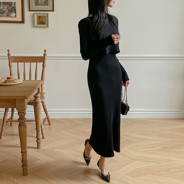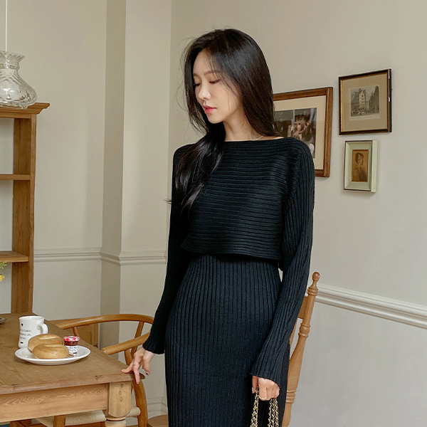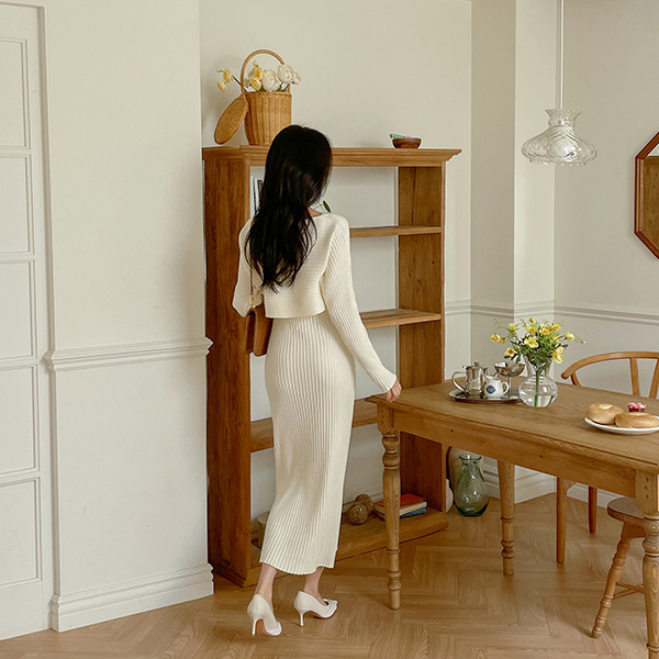 柔丝 条绒 针织衫 (套装) 连衣裙