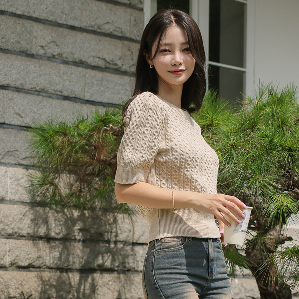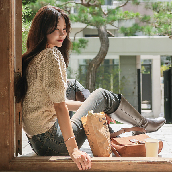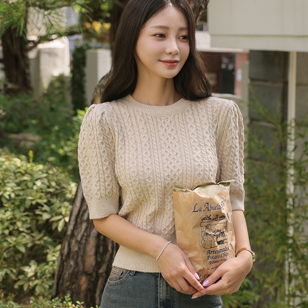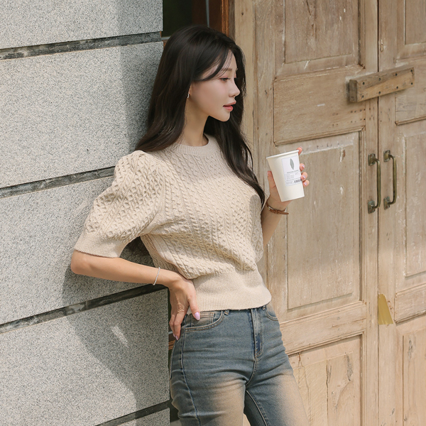 秋季 缆绳 泡泡袖 袖 针织衫