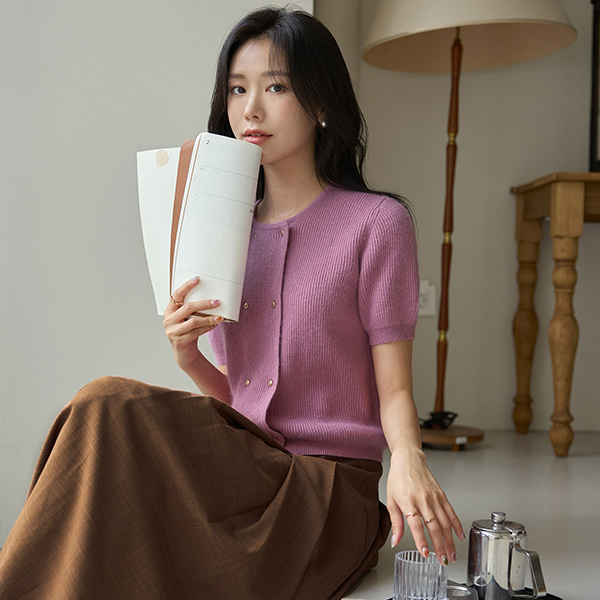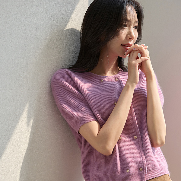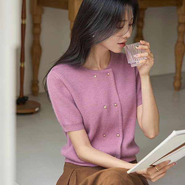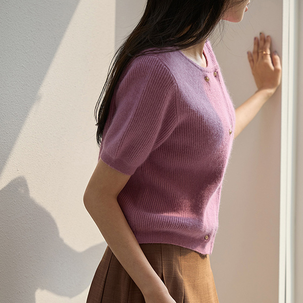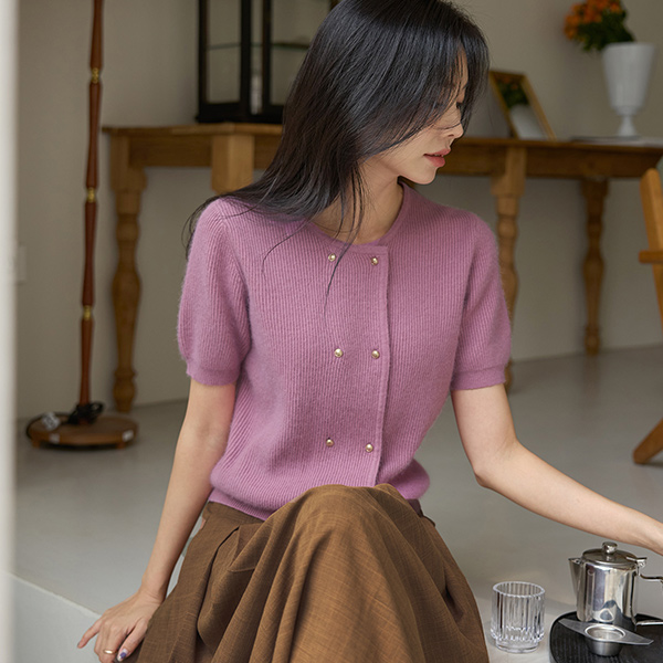 柔软 貉子 双 金色纽扣 针织衫 开衫