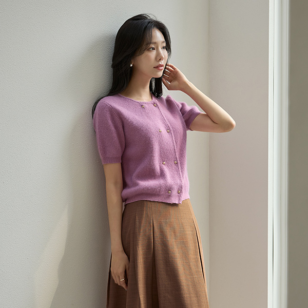 柔软 貉子 双 金色纽扣 针织衫 开衫