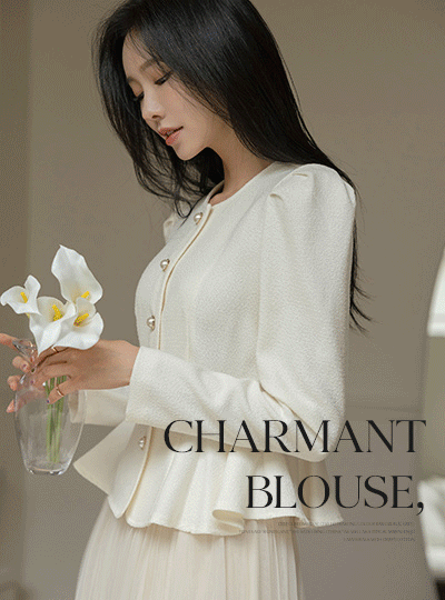 Charmant 荷叶边 线条 珍珠 扣子 罩衫