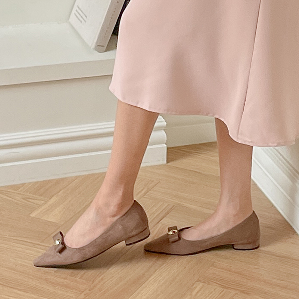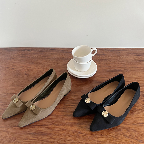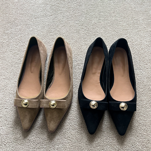 黄金 扣子 翻毛皮 平底鞋