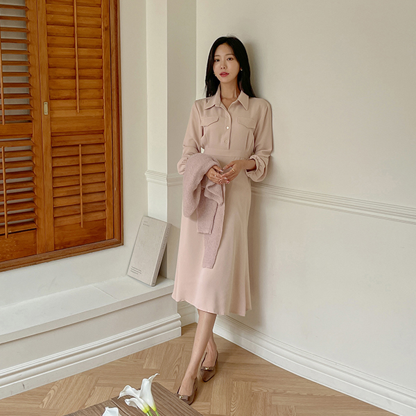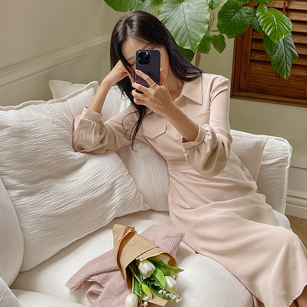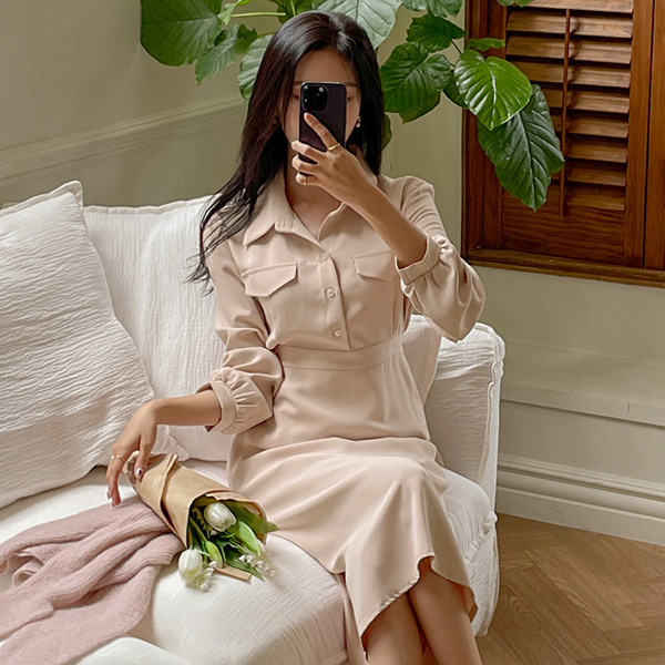 口袋 领子 包 蝴蝶结 苗条 情调 连衣裙