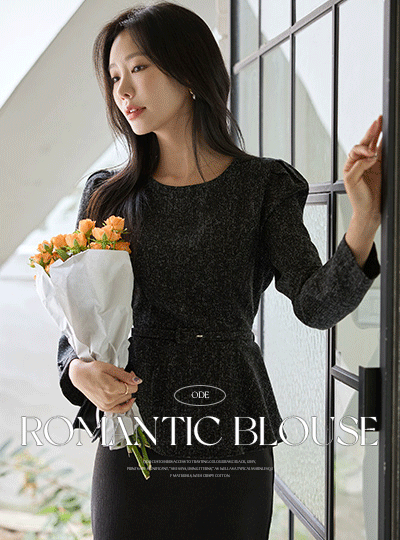 浪漫 泡泡袖 荷叶边 长袖 罩衫 (腰带SET)