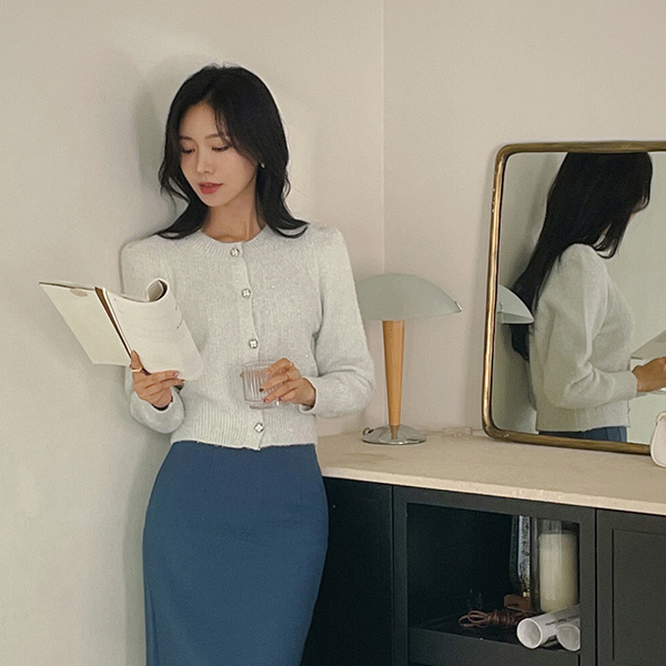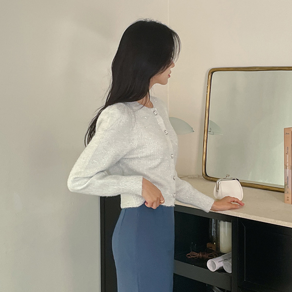 闪亮 珍珠 圆领 针织衫 开衫
