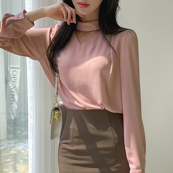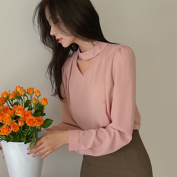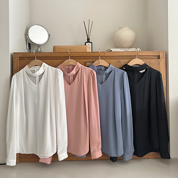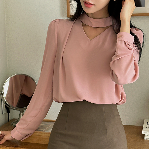 颈链领 点缀 肩膀 褶皱 罩衫