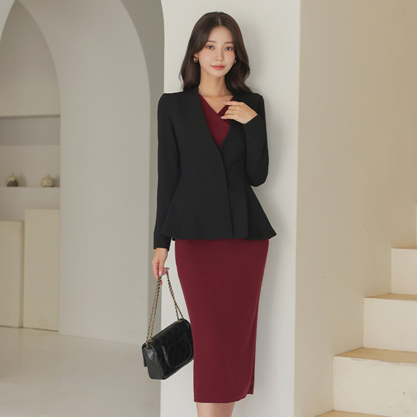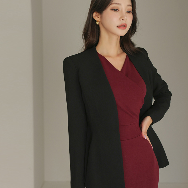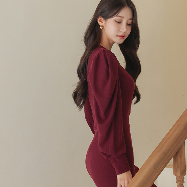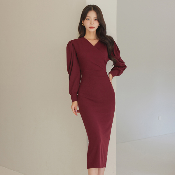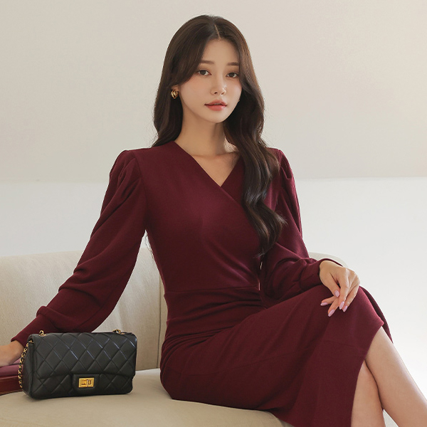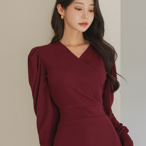 华丽 褶皱 비숍 袖子 弹力 交叉式连衣裙 Ⅱ