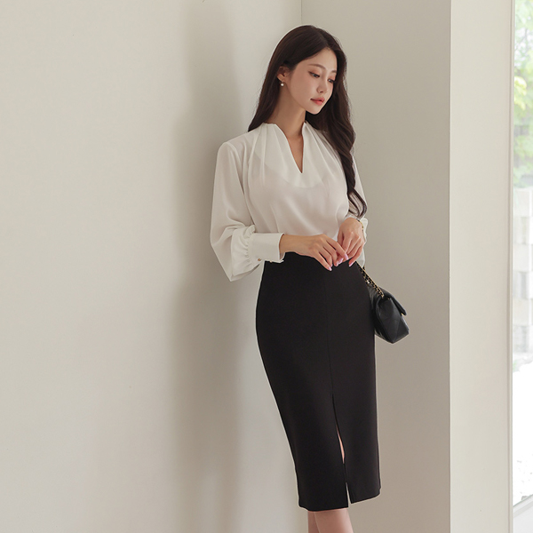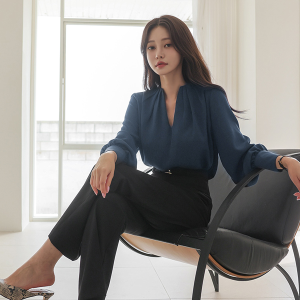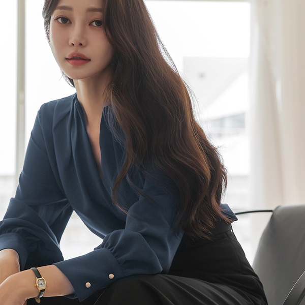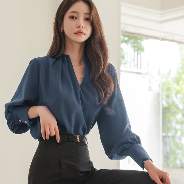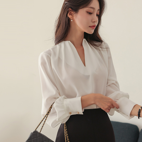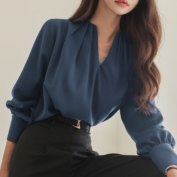 深 V领 细褶 点缀 罩衫