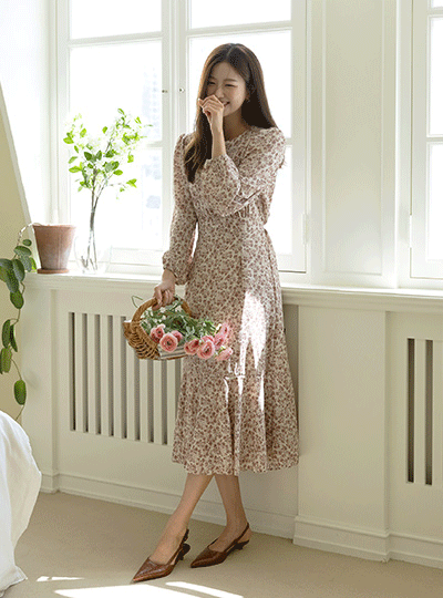 浪漫 花纹 图案 褶皱 后面蝴蝶结 连衣裙