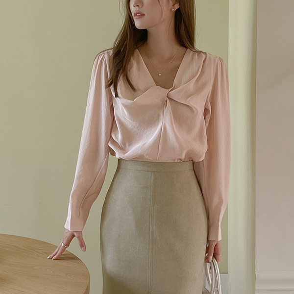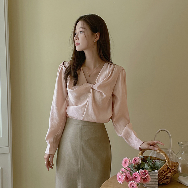 扭曲 细节 有光泽 莫代尔 长袖 罩衫