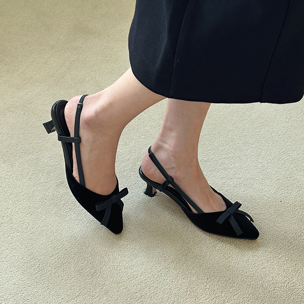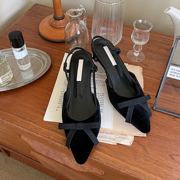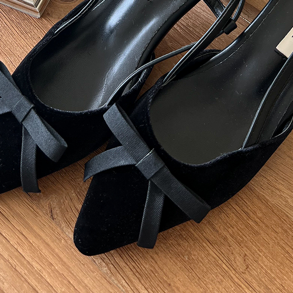 浪漫 蝴蝶结 丝绒 露脚后跟鞋 高跟鞋