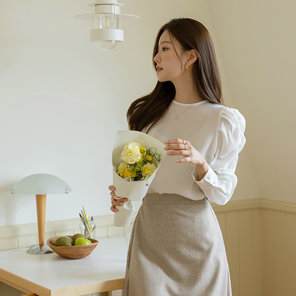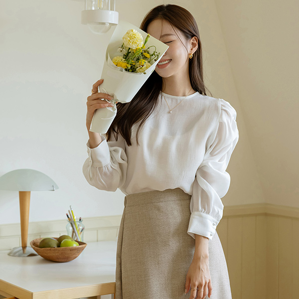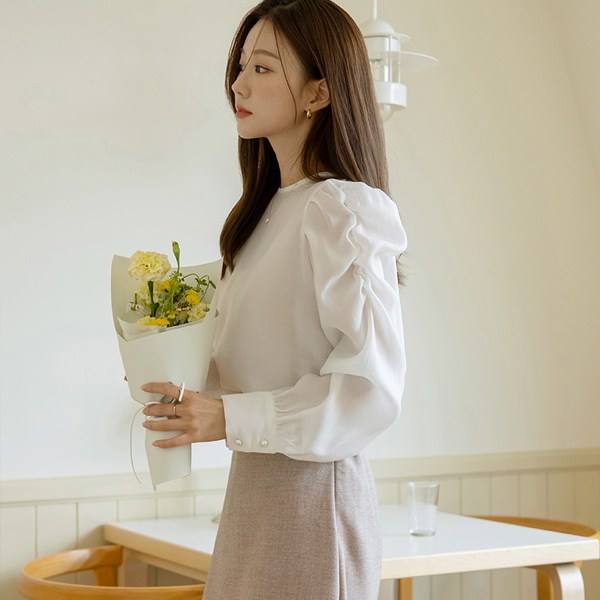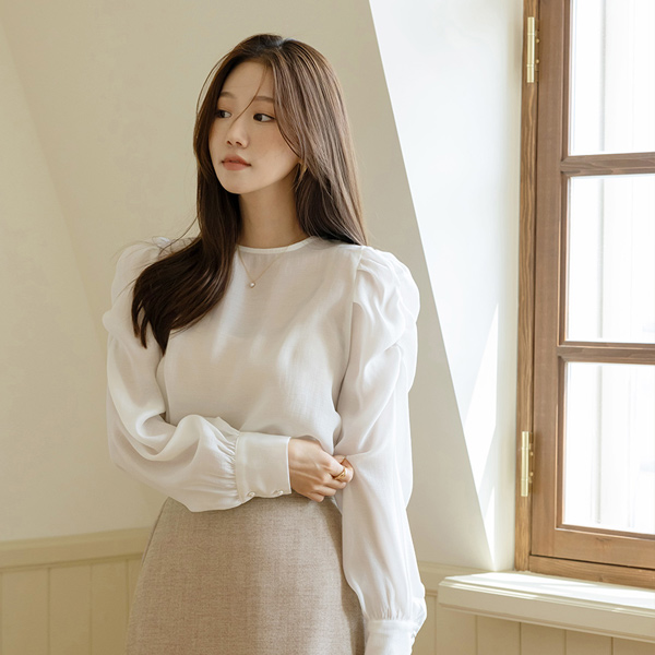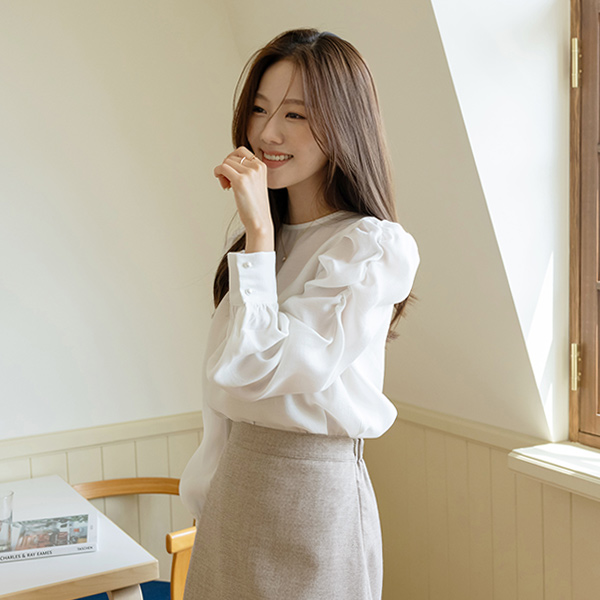 浪漫 透视 褶皱 泡泡袖 天丝 长袖 罩衫