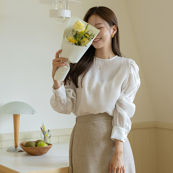 浪漫 透视 褶皱 泡泡袖 天丝 长袖 罩衫