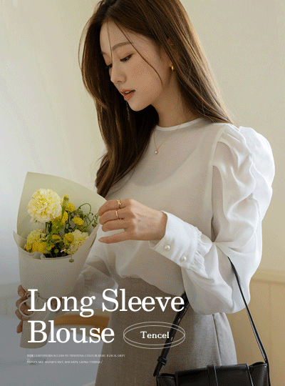 浪漫 透视 褶皱 泡泡袖 天丝 长袖 罩衫