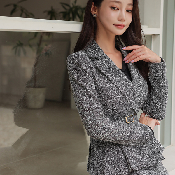 Ellin 双 扣子 荷叶边 束带 结子花式 夹克