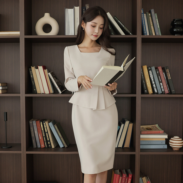 Linne 方领 不规则 荷叶边 弹力 连衣裙(长袖)