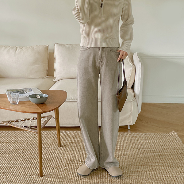 秋季 颜色 长腿 宽绰 牛仔色 裤子