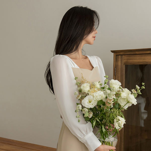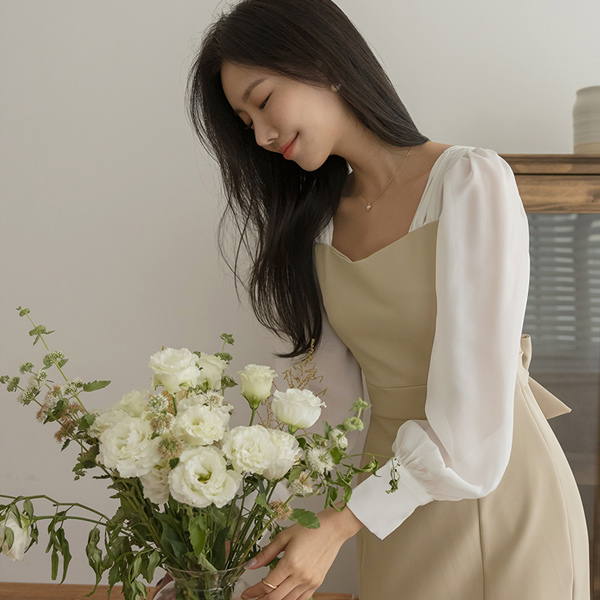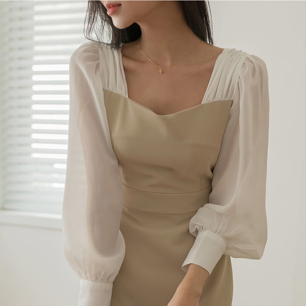 优雅 雪纺 袖 Mermaid Fit 连衣裙