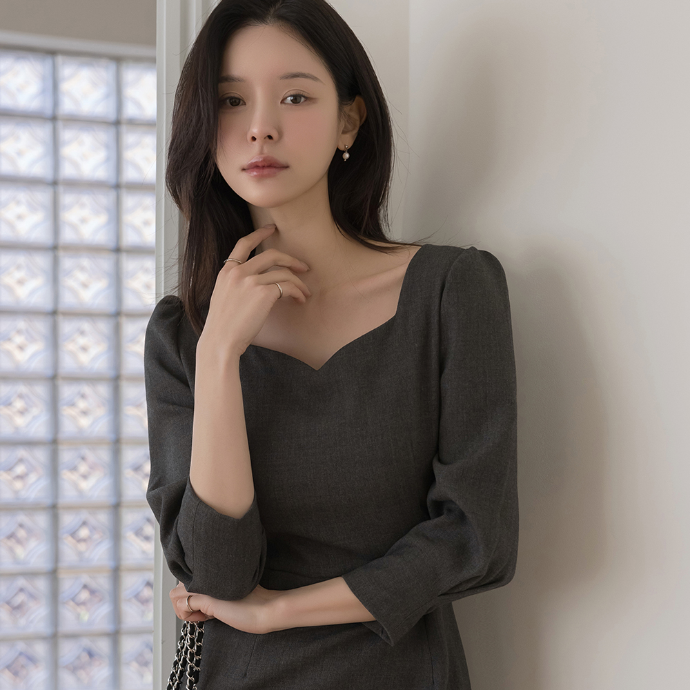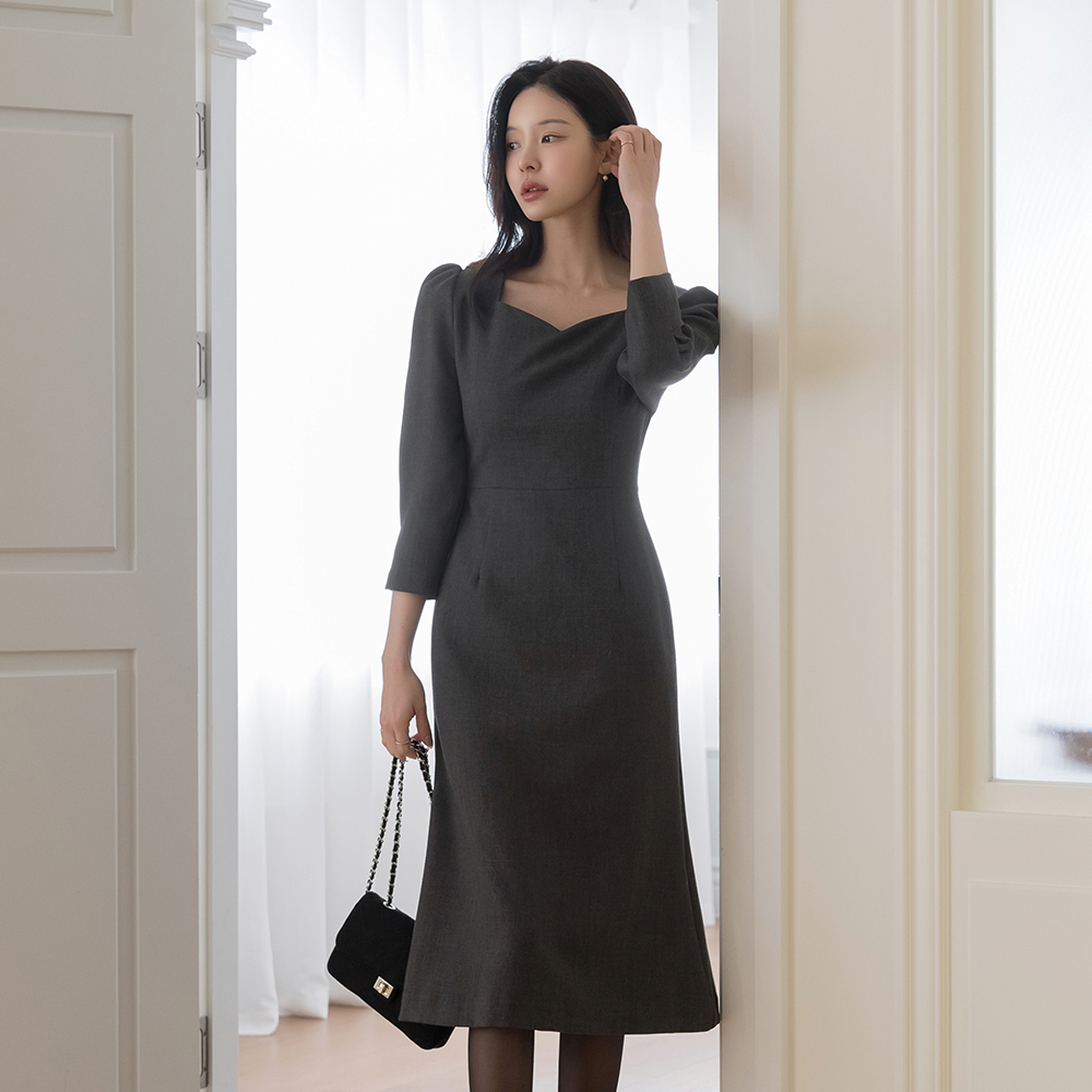 浪漫 爱心 方领 泡泡袖 连衣裙