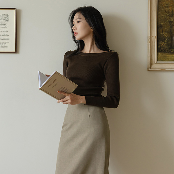 肩膀 黄金 扣子 点缀 嘴唇领 针织衫