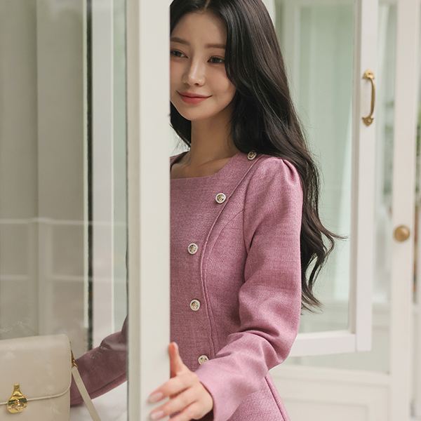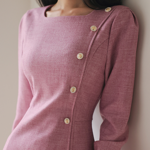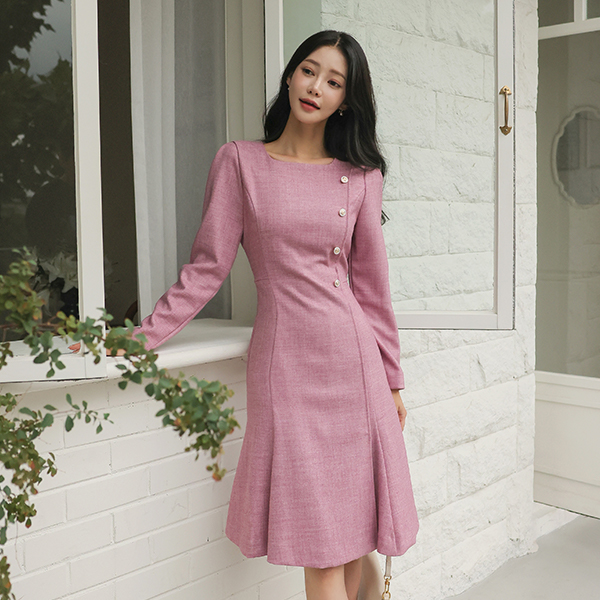 侧纽 线条 黄金 扣子 美人鱼 连衣裙