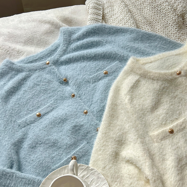 黄金 扣子 翻毛皮 平底鞋
