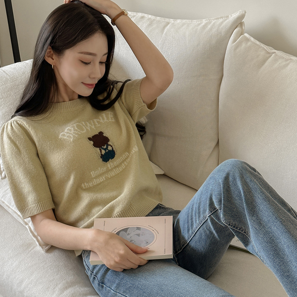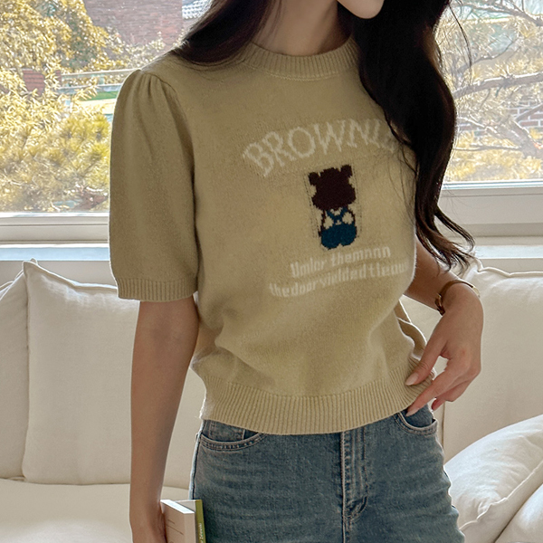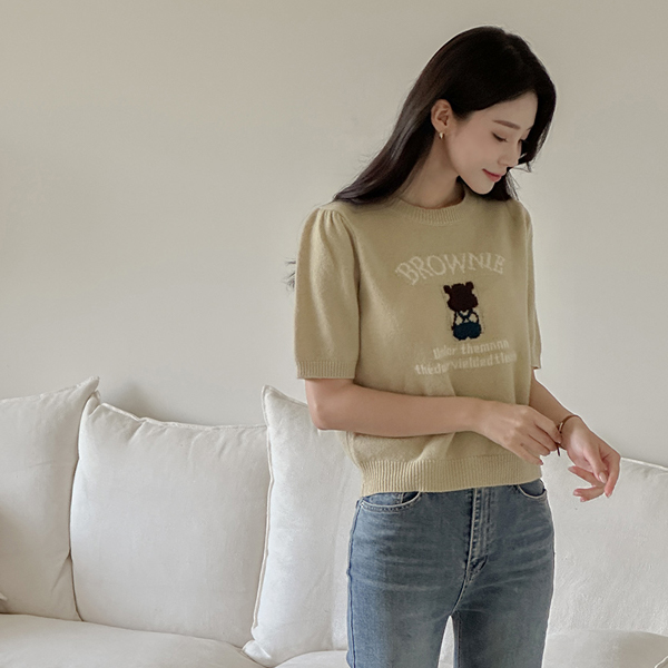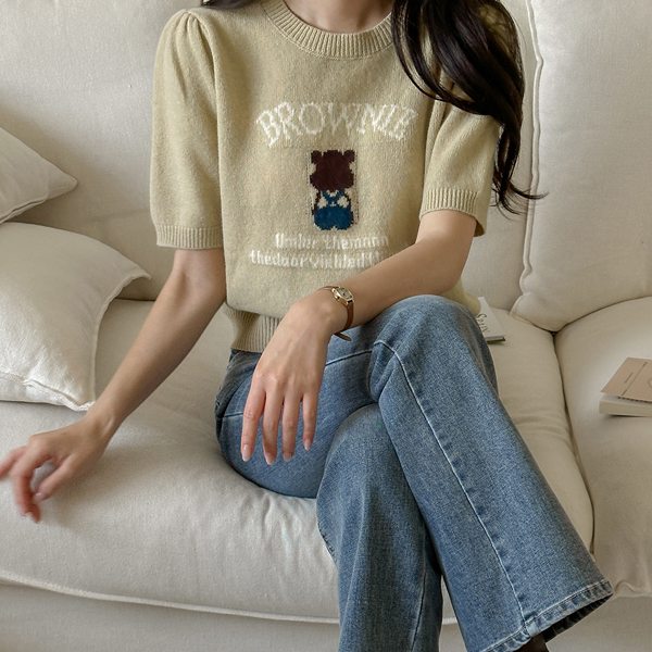 Brownie 圆领 短袖 羊毛 针织衫