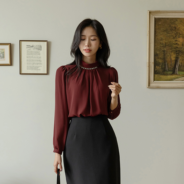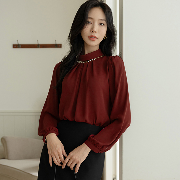 宝石 项链 点缀 罩衫