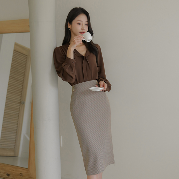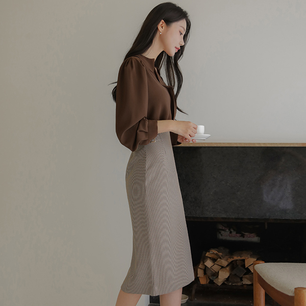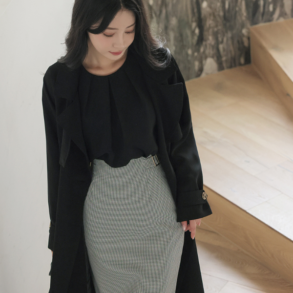侧纽 带扣 犬牙 格子 H字型 裙子
