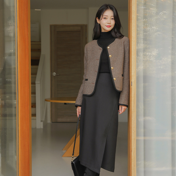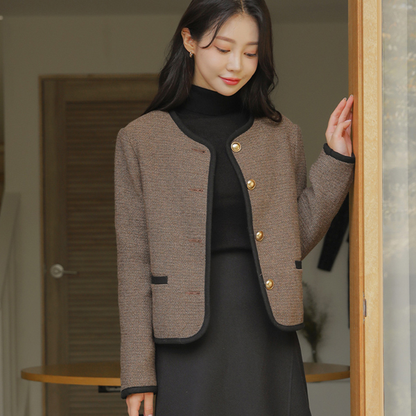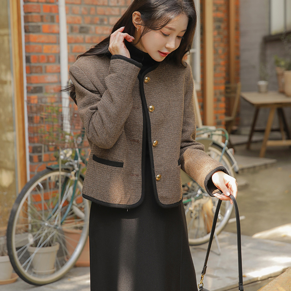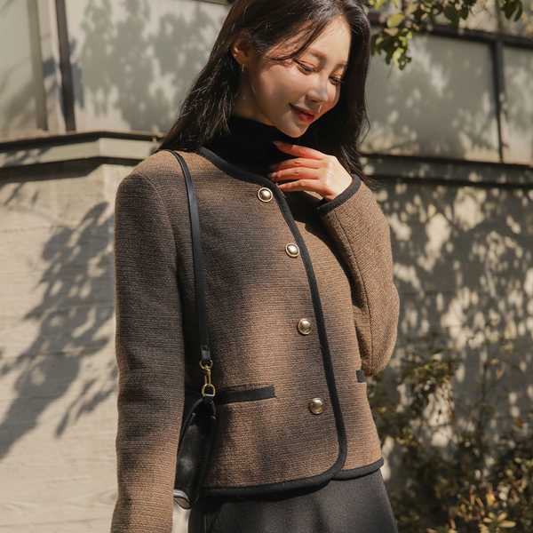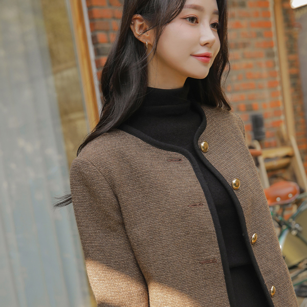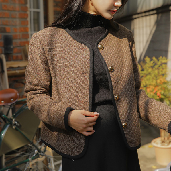 配色 衬里 圆领 羊毛 夹克